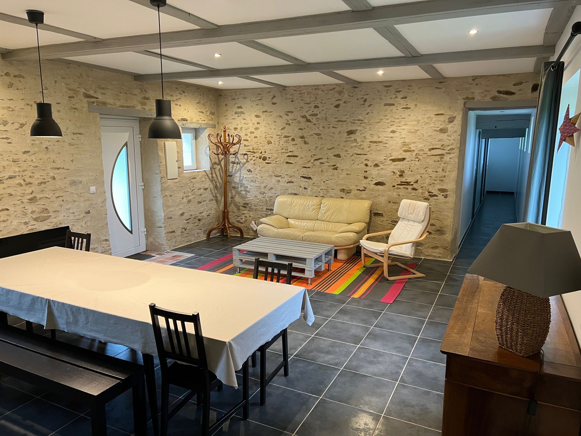 Cuisine équipée ouverte sur salon pouvant accueillir une quinzaine de convives pour un moment convivial.